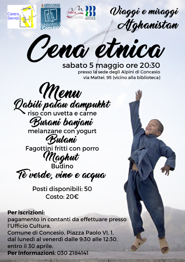 Per Iscrizioni: Pagamento in contanti da effettuare entro lunedì 30 aprile presso l’Ufficio Cultura del Comune di Concesio sito in Piazza Paolo VI, 1 dal lunedì al venerdì dalle ore 9:30 alle 12:30.