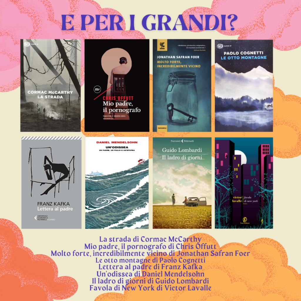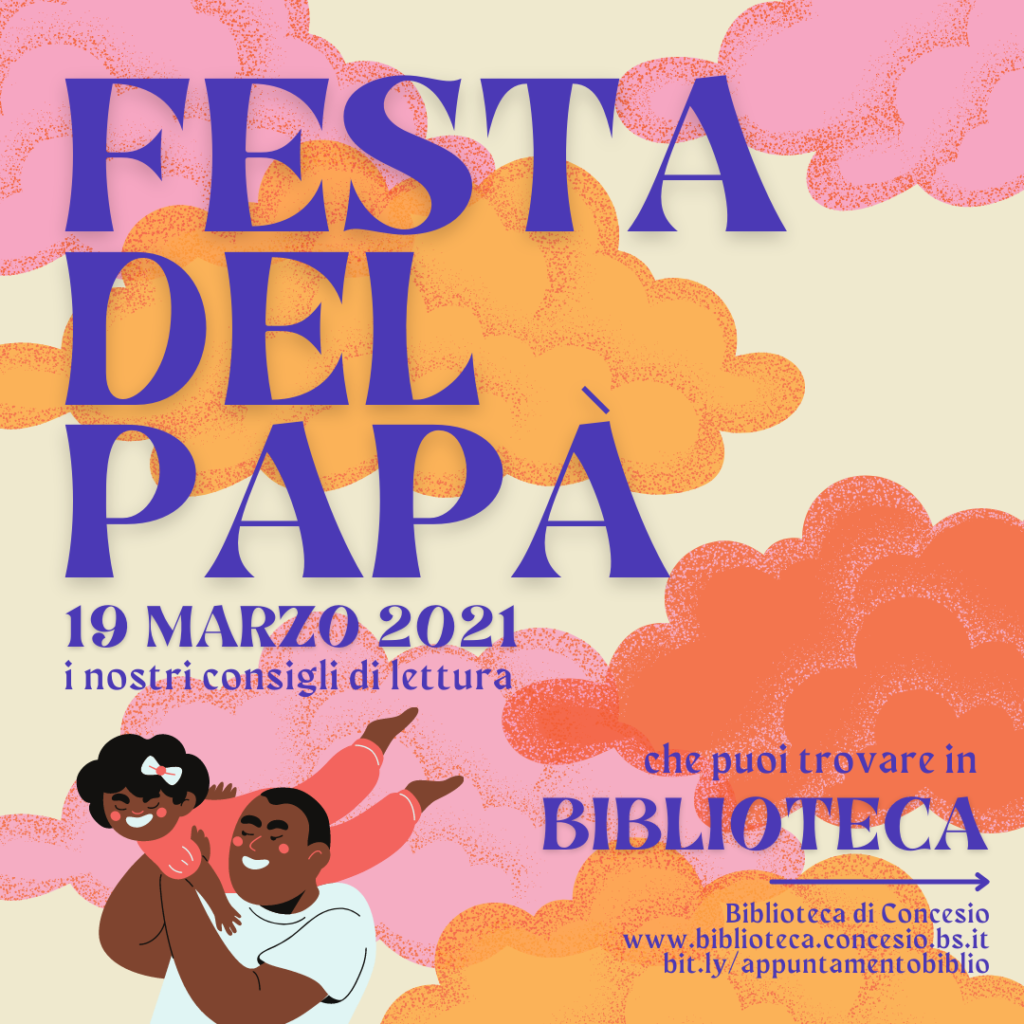 19 Mar Auguri papà! Posted at 18:36h in Adulti, Bambini, Consigli di lettura, Covid, Ragazzi di Matilde Antonelli 0 Commenti 0 Likes Share Ecco i nostri consigli di lettura per la festa del papà Per grandi, piccoli e piccolissimi! Disponibili in biblioteca! Prenotali su OPAC: https://opac.provincia.brescia.it/ O passa a trovarci prenotando un appuntamento! Tags: Consigli di lettura, famiglie, genitori, papà