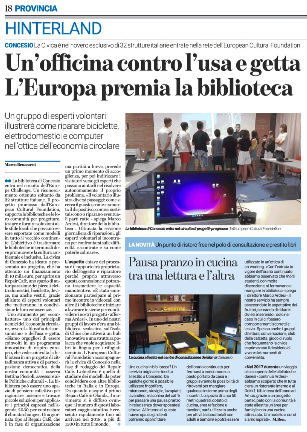 Sempre sul Bresciaoggi il giornalista Marco Benasseni ci racconta un’altra novità in casa Biblioteca: l’area Convivio, leggilo sempre sul sito del Bresciaoggi