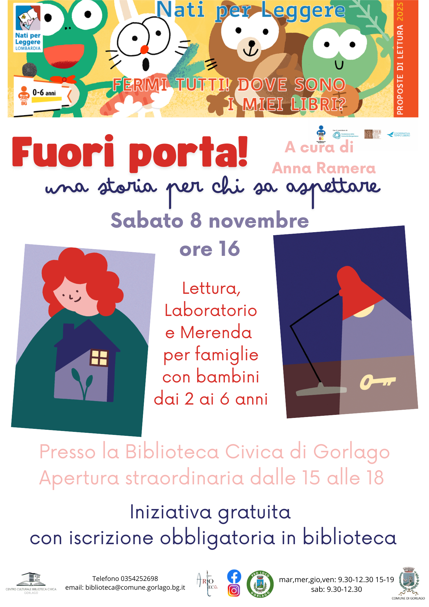 Anna Ramera, artista della nostra Artoteca nel 2019, ed ora presente nell'Artoteca di Gorlago con Fuori Porta-Tavola13 e Fuori Porta-Tavola14 sarà ospite della Biblioteca di Gorlago e della Biblioteca di Seriate sabato 8 novembre con un laboratorio per bambini e famiglie ispirato all'albo illustrato Fuori Porta, il primo albo illustrato della Collezione Paolo VI in collaborazione con Giovanni Rossi. Qui le locandine degli eventi