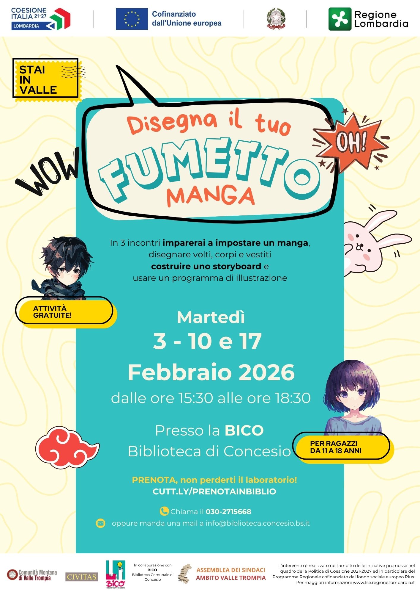 - Descrizione: Laboratorio introduttivo al mondo del disegno e progettazione dei manga.