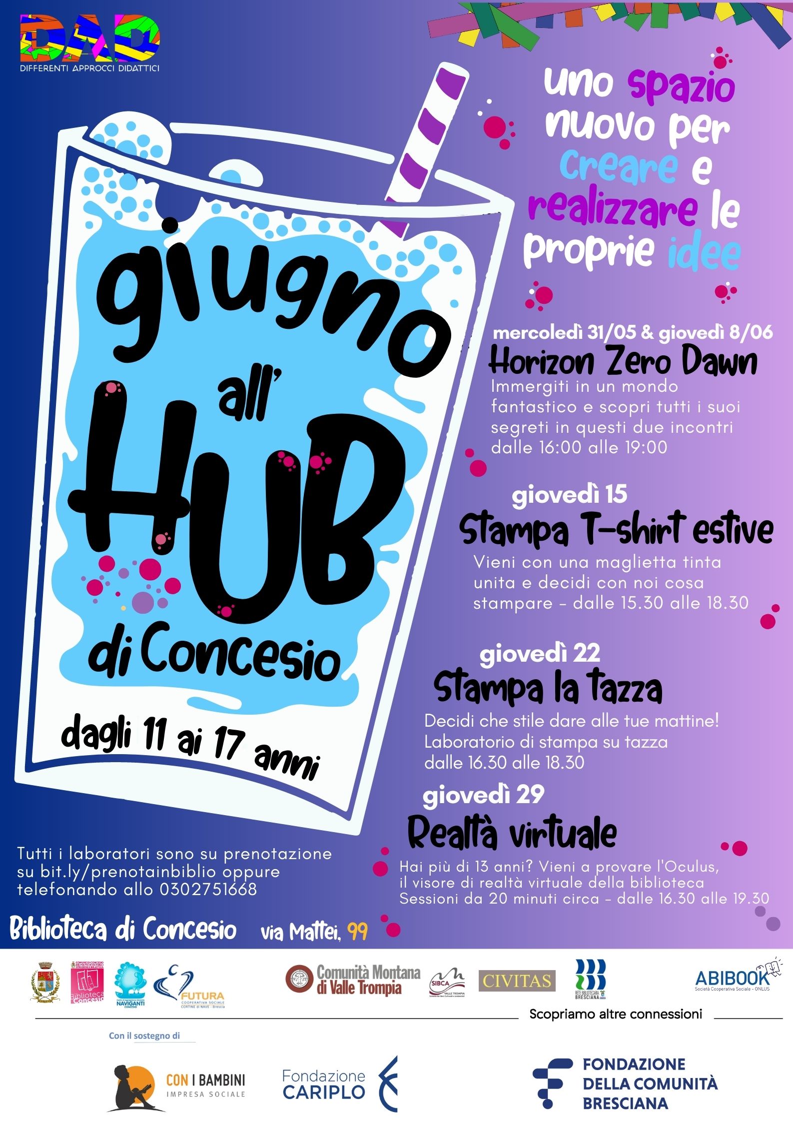 Laboratorio esperienziale di disegno con i gessi colorati e il carboncino sabato 20 maggio dalle 10.00 alle 12.00 Conduce Mira Romano per ragazzi e adulti, dai 15 anni Iscrizione gratuita ma obbligatoria, max 15 partecipanti, su bit.ly/prenotainbiblio o 0302751668 ...