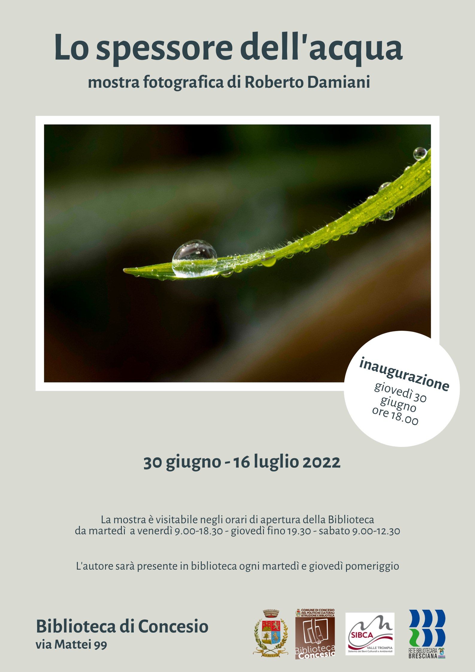 30 giugno - 16 luglio 2022 Roberto Damiani offre allo spettatore opere fotografiche di grande formato, frutto si una ricerca accurata: una varietà di microscopici paesaggi inaccessibili alla semplice vista. Inaugurazione: GIOVEDì 30 GIUGNO ORE 18.00 Ingresso libero La mostra è visitabile negli orari di apertura della biblioteca e...