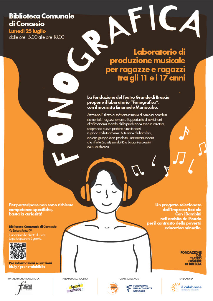 Lunedì 25 luglio dalle ore 15.00 alle ore 18.00 Fonografica : Laboratorio di produzione musicale per ragazze e ragazzi tra gli 11 e i 17 anni con Emanuele Maniscalco Informazioni sull'evento FONOGRAFICA Laboratorio di produzione musicale per ragazze e ragazzi tra gli 11 e i 17 anni con Emanuele...