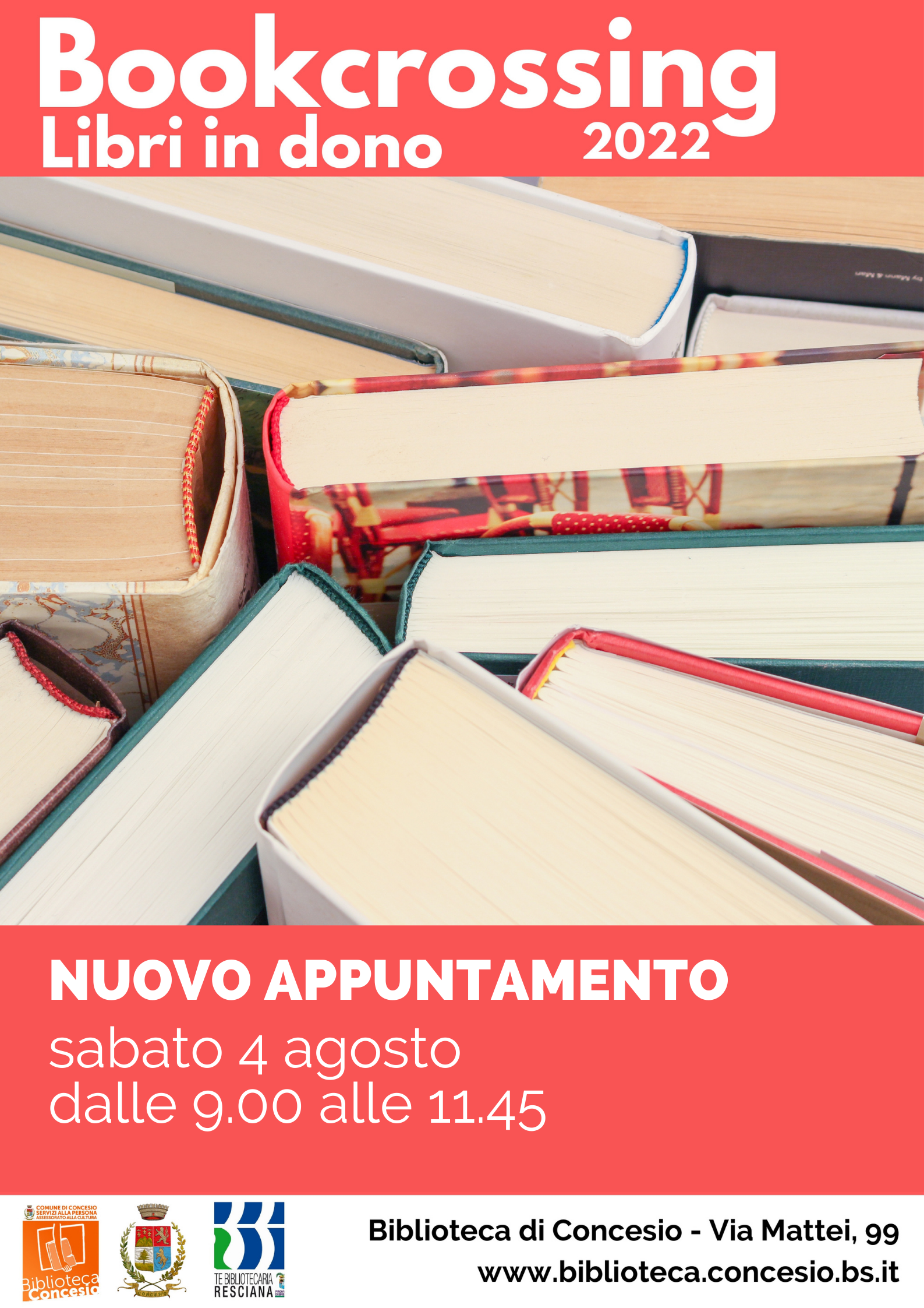 Sabato 6 agosto dalle 9.00 alle 11.45 non perdetevi il nuovo appuntamento con il Bookcrossing - libero scambio di libri. Vi aspettiamo in Biblioteca ...