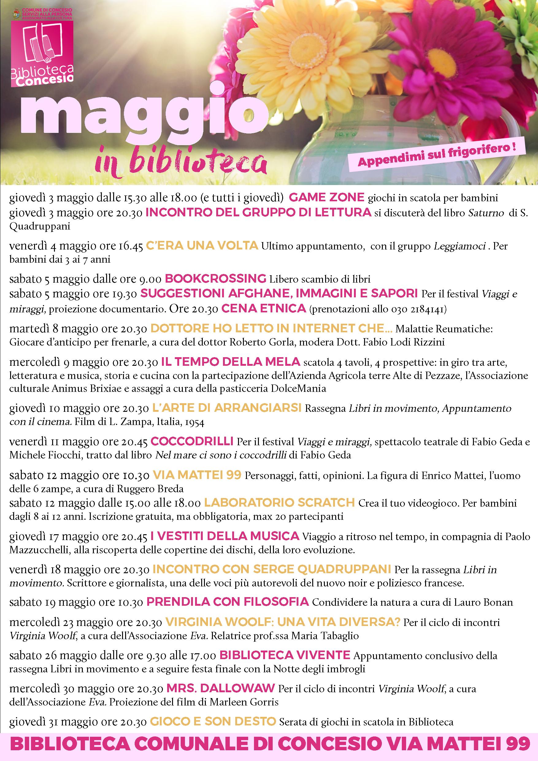 Mercoledì 30 Maggio ore 20:30 Proiezione del film "Mrs. Dalloway" tratto dall'omonimo romanzo Nel giugno 1923, a Londra, la cinquantenne Clarissa Dalloway, moglie di un facoltoso uomo politico, esce a comprare fiori per un ricevimento che darà in serata. Durante la giornata rievoca gli eventi di un'estate in campagna e incrocia casualmente, senza...