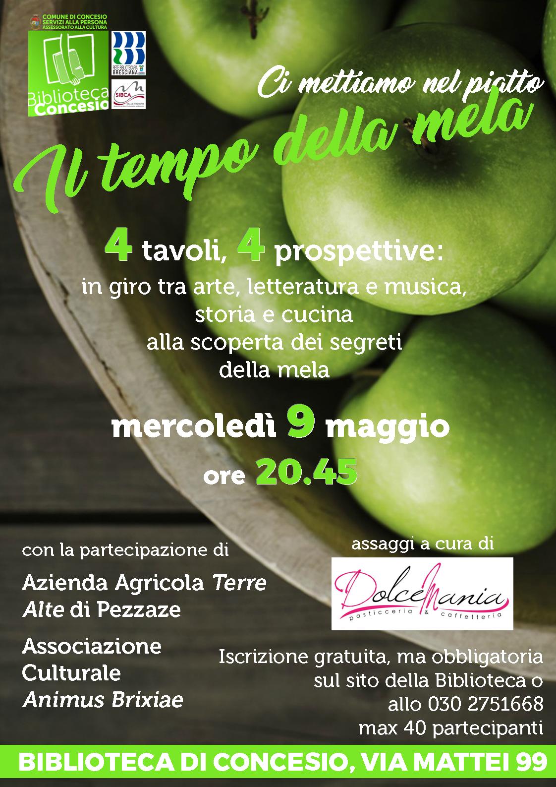 4 tavoli, 4 prospettive: in giro tra arte, letteratura e musica, storia e cucina alla scoperta dei segreti della mela. Mercoledì 9 maggio ore 20:45 Con la partecipazione di -Azienda Agricola Terre Alte di Pezzaze -Associazione Culturale Animus Brixiae Iscrizione gratuita ma obbligatoria sul sito della Biblioteca o allo 0302751668. Max 40 partecipanti. ...