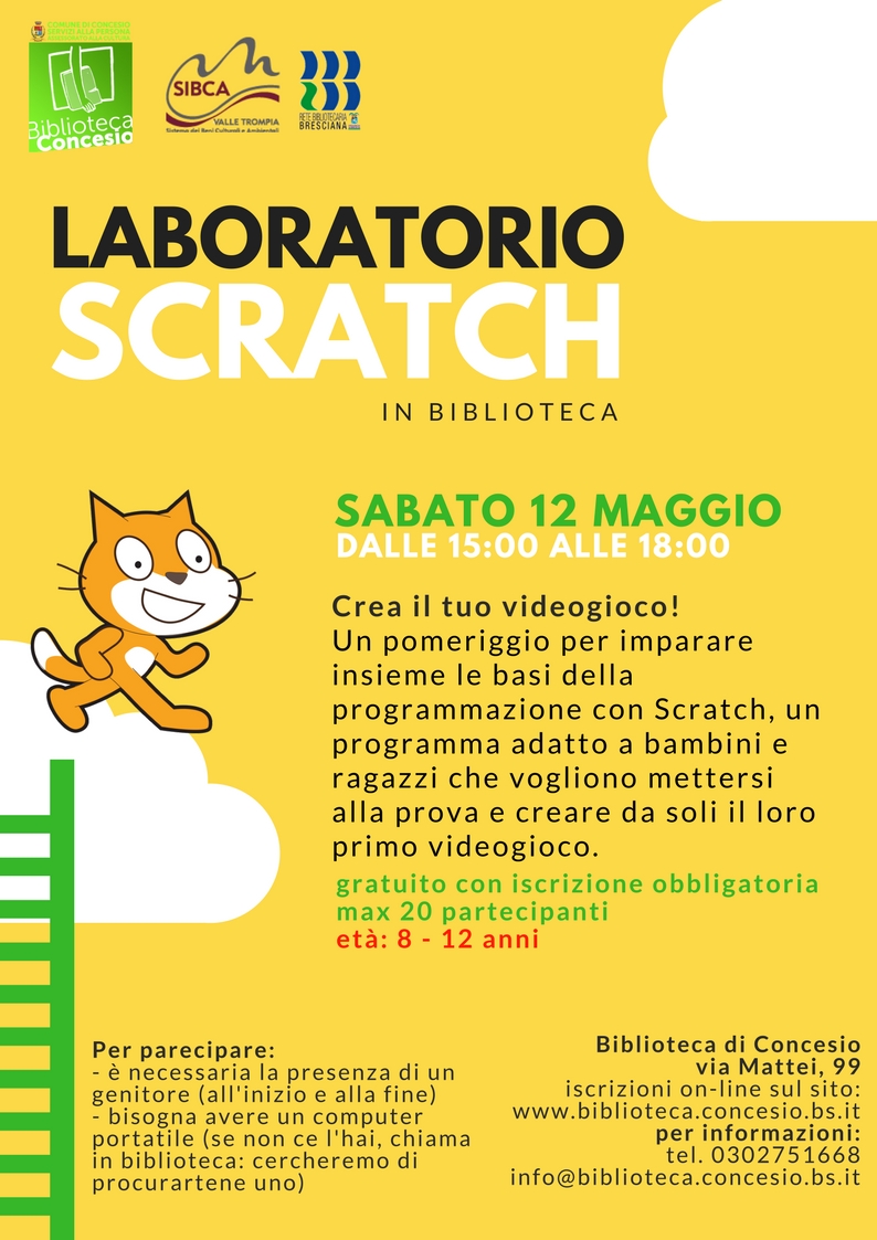 Sabato 12 maggio dalle 15:00 alle 18:00 Crea il tuo videogioco! Un pomeriggio per imparare insieme le basi della programmazione con Scratch, un programma adatto a bambini e ragazzi che vogliono mettersi alla prova e creare da soli il loro primo videogioco. Gratuito con iscrizione obbligatoria, massimo 20...