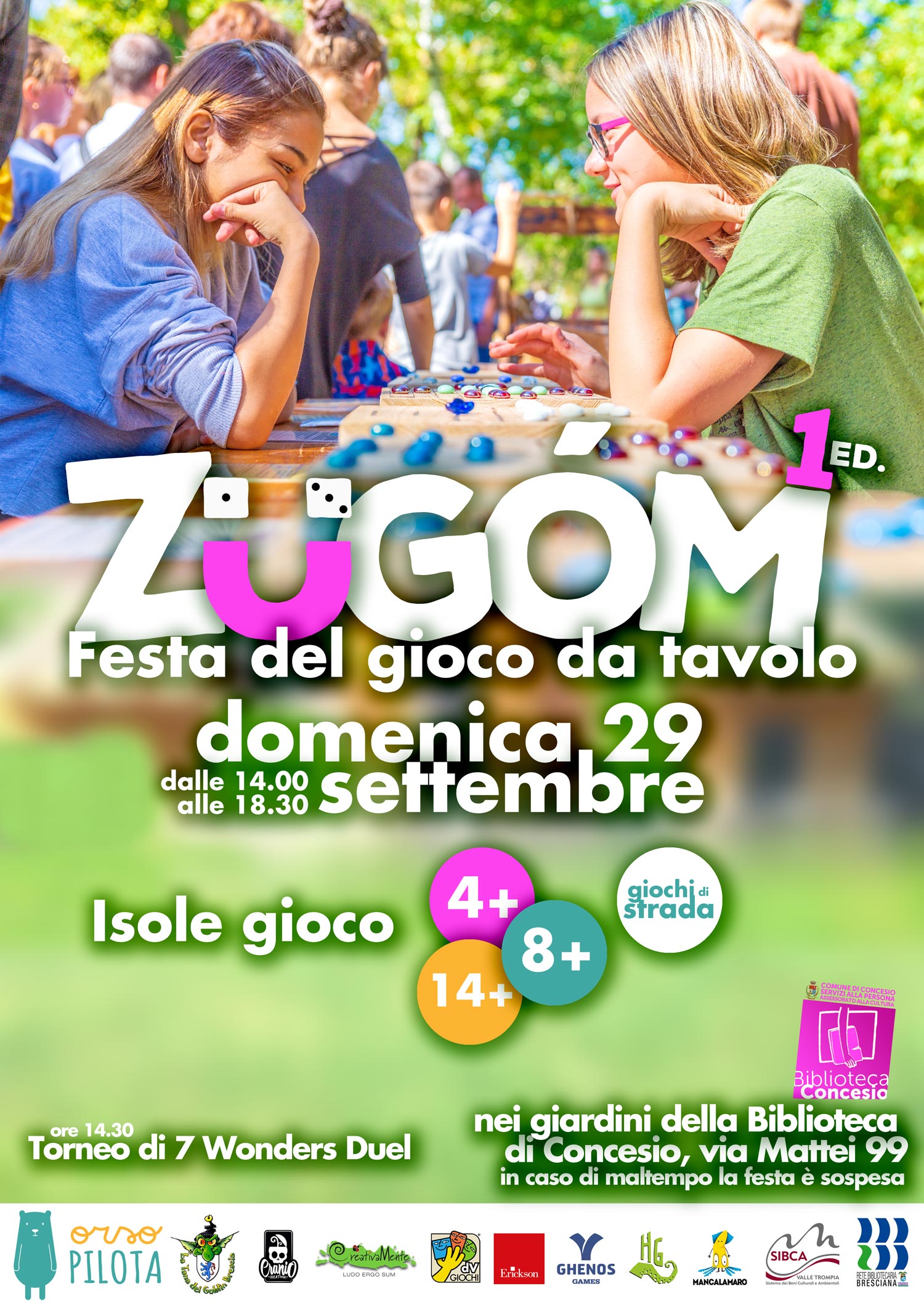 Domenica 29 settembre 2019 dalle ore 14.00 alle 18.30, siete invitati alla prima edizione di ZÜGOM, la Festa del Gioco da tavolo. Ci saranno 4 isole gioco per fascia d'età: dai 4 anni, dagli 8 anni e dai 14 anni in su (anche adulti) e...
