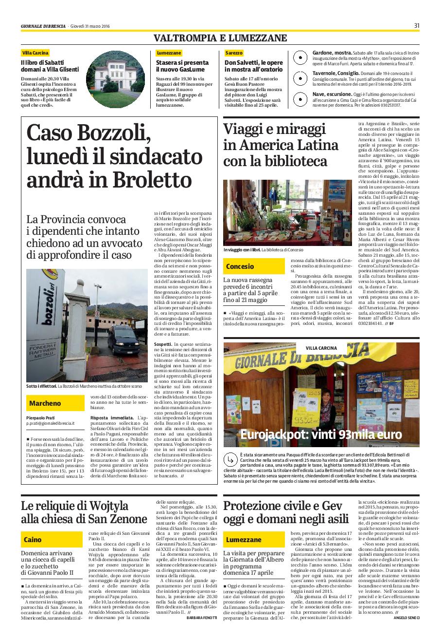 Articolo apparso il 31 marzo 2016 sul Giornale di Brescia